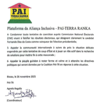Dans une vidéo diffusée en ligne, l’opposition a fermement dénoncé ce qu’elle considère comme un « faux coup d’État » orchestré de toutes pièces par le président sortant, afin d’empêcher la publication des résultats qui lui seraient défavorables. elle, la manœuvre visait à subvertir la volonté populaire et à maintenir Embaló au pouvoir.