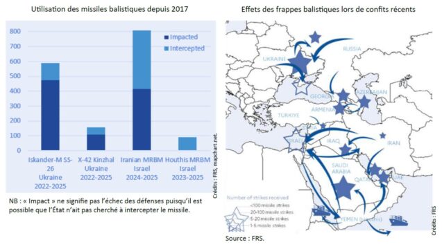 Depuis la fin des années 2010, les progrès technologiques conduisent de plus en plus d’États non seulement à acquérir des missiles balistiques mais également à les utiliser massivement pour des frappes conventionnelles. En Arabie saoudite, en Ukraine et en Israël, les missiles balistiques sont largement utilisés, respectivement par les Houthis, la Russie et l’Iran. Ces conflits constituent une démonstration de l’instabilité et des dommages pouvant être causés par des frappes balistiques. Les systèmes de défense deviennent dans ce contexte une capacité jugée essentielle pour tenter de protéger les cibles sensibles et les populations contre ces frappes. En effet, la capacité des systèmes de défense à être efficaces contre certaines menaces, en particulier en Israël, suscite un intérêt pour l’acquisition ou le développement d’architectures défensives dans diverses régions (Europe, Asie, Moyen-Orient).